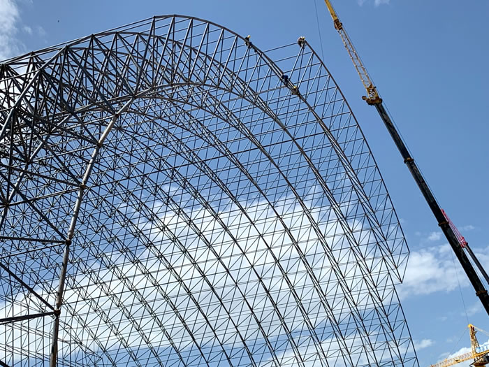 (2)网架加工前应对现场尺寸进行复测,确认无误后方可进行加工、安装;网架制作、运输、安装应遵守《空间网格结构技术规程》JGJ7-2010、《钢网架河南螺栓球节点》JG/T 10-2009、《钢网架河南螺栓球节点用高强度螺栓》 GB/T 16939-2016、《河南钢结构河南工程河南施工规范》 GB50755-2012、《河南钢结构河南工程河南施工质量验收标准》 GB50205-2020。